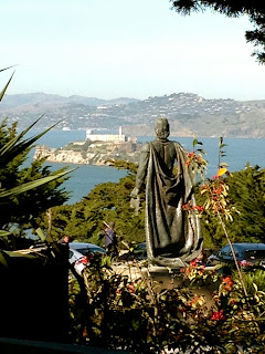 Christopher Columbus in front of the Coit Tower.